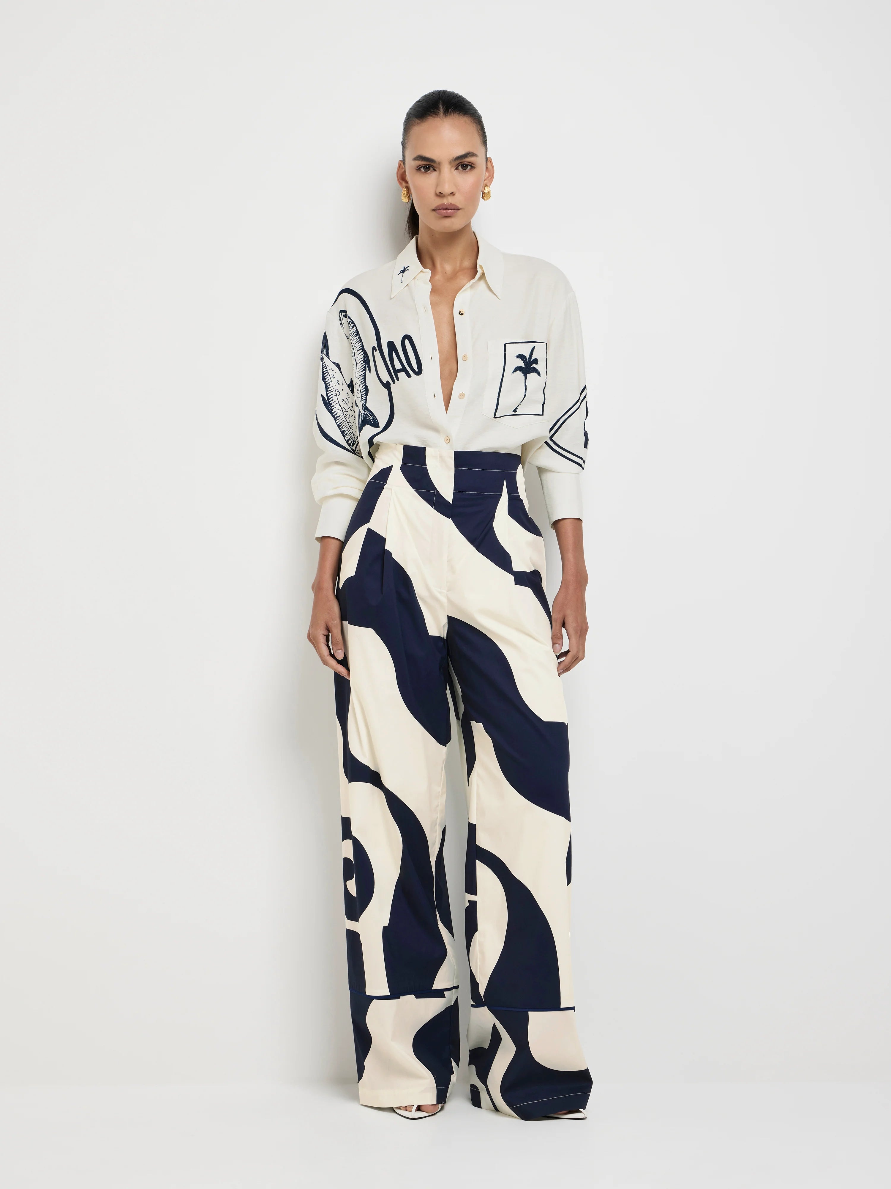 Island Energy, Everyday Ease. Introducing our Ripple Pant - featuring a printed cotton blend fabrication, relaxed fit, contrast piping on hem cuff and side seam pockets. Pair back with our matching Ripple Shirt to complete the look.